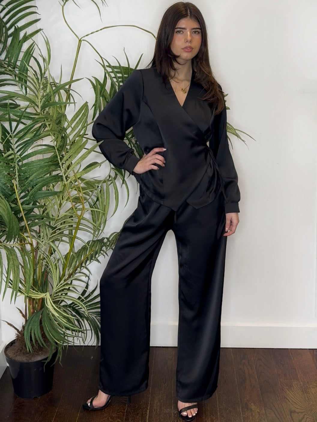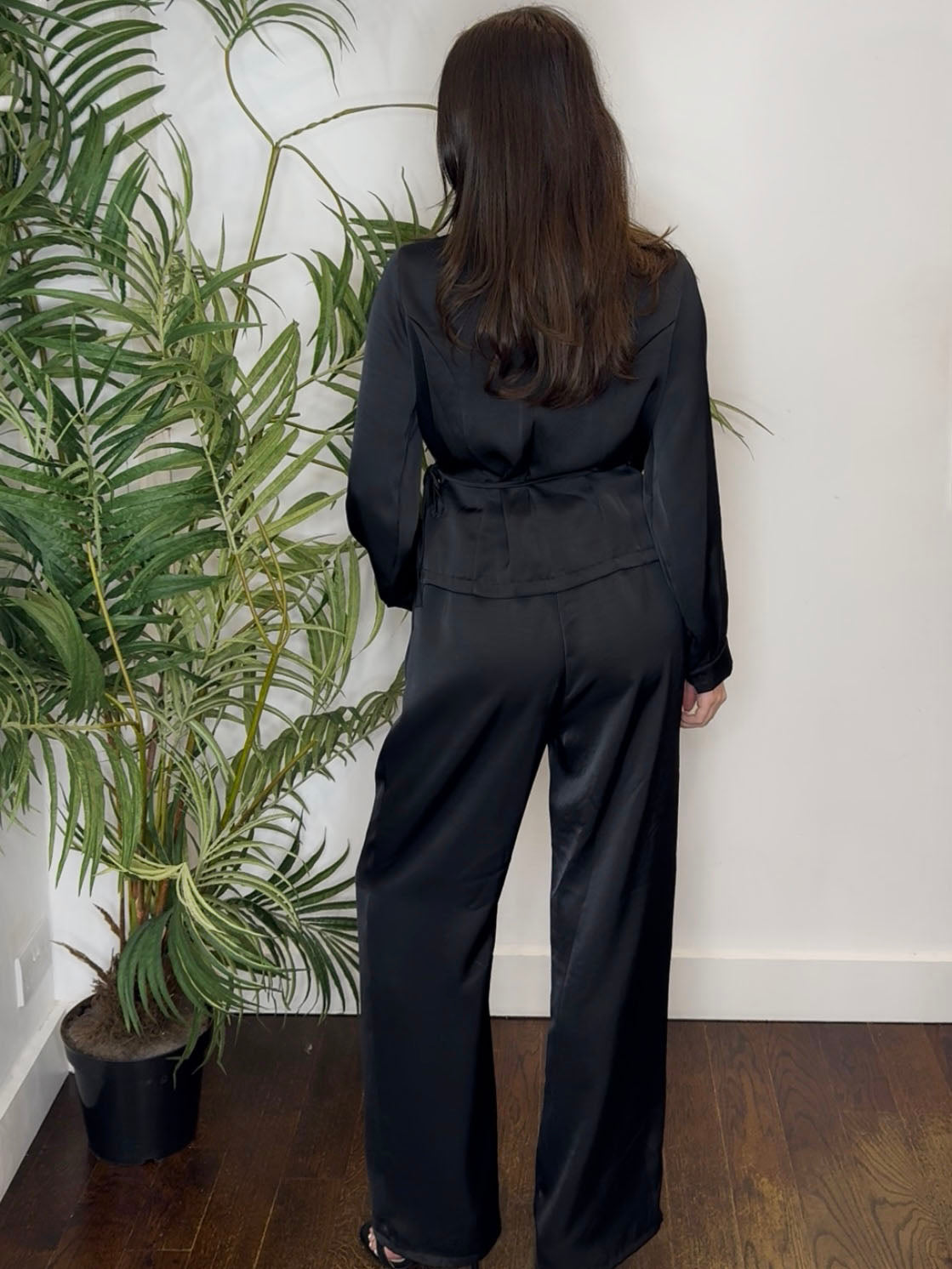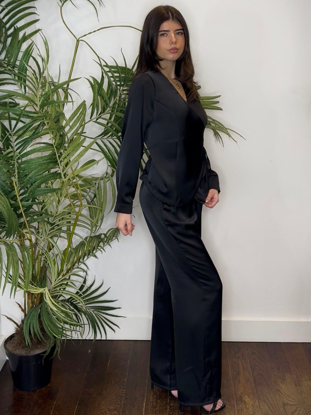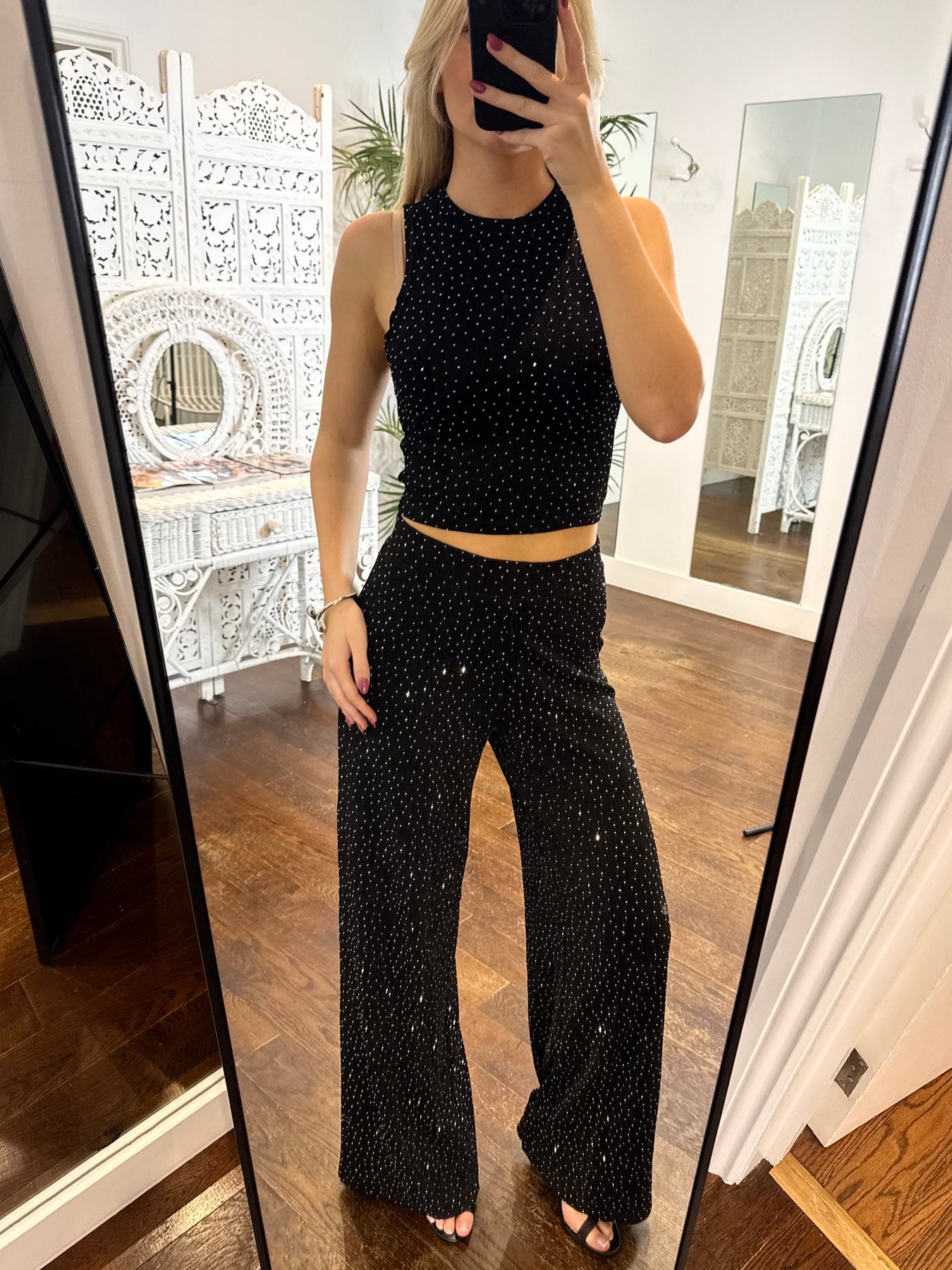 SEQUIN SPLIT SKIRT SHEER SEQUIN PETAL TOP SHEER SEQUIN PETAL PALAZZO TULIP APPLIQUÉ SKIRT ORLENDINA FRINGE MIDI SKIRT BLACK